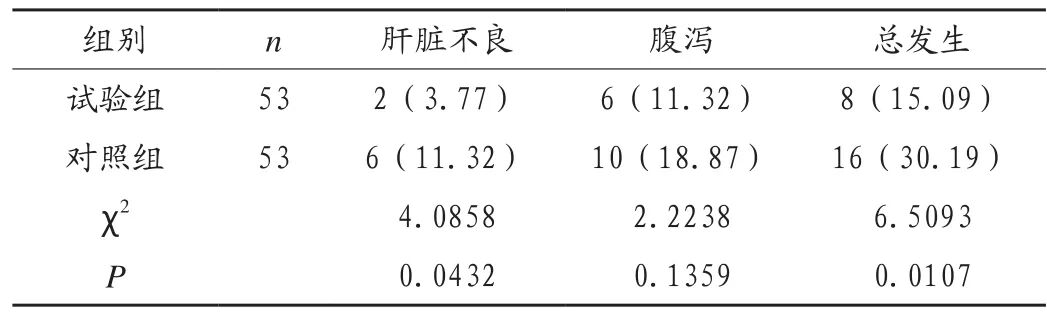 试验组的不良反应率显著低于对照组(P<0.05),见表3。