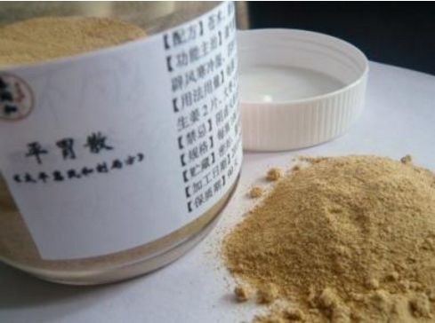 按:平胃散出自《太平惠民和剂局方》卷三。原为散剂,加生姜2片,大枣2枚,水煎去姜枣,食前热服;或入盐,捻沸汤冲服。功能燥湿运脾,行气和胃。主治脾胃不和,不思饮食,心腹胁肋胀满刺痛,口苦无味,胸满短气,呕哕恶心,噫气吞酸,面色萎黄,肌体瘦弱,怠惰嗜卧,体重节痛,常多自利。方中重用苍术为君药,以其苦温性燥,最善除湿运脾;臣以厚朴行气化湿,消胀除满;佐以陈皮理气化滞;使以甘草甘缓和中、调和诸药,生姜、大枣调和脾胃。诸药相合,可使湿浊得化,气机调畅,脾胃复健,胃气和降。