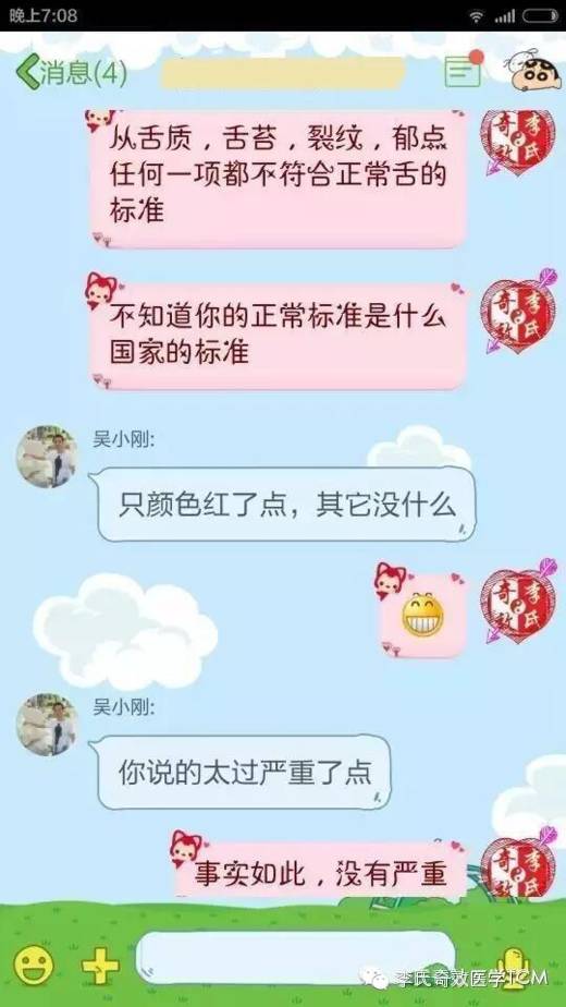我们通过几个病例来说明一下,这答案就不说自明了。我们都学习过课本上的中医最传统的舌诊方法,之前我们曾列举的舌相也证明二者区别了,传统中医认为的正常舌,在我们看来都是不正常的,并且可以把症状说准确,这是我们更准确的理论优势。今天我们再通过几则对话,来给大家做一个对比,感受一下李氏奇效舌诊和传统的中医舌诊法的区别何在。