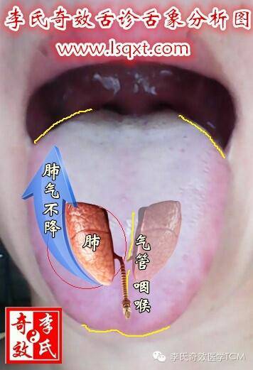 这不用多说了,这就是“右降不及”或者称为“肺气不降”的舌相特点。