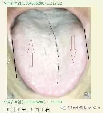 我们知道了“肝升于左,肺降于右”的升降规律后,我们再来看舌相图。