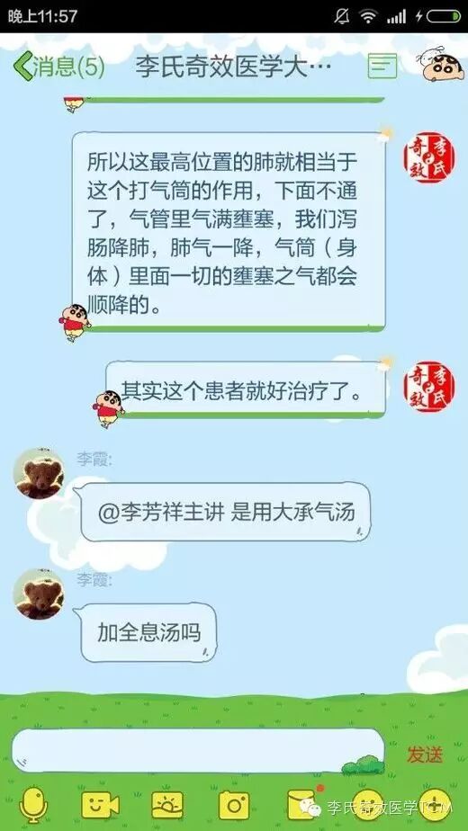 所以这最高位置的肺就相当于这个打气筒的作用,下面不通了,气管里气满壅塞,我们泻肠降肺,肺气一降,气筒(身体)里面一切的壅塞之气都会顺降的。这个患者就好治疗了。