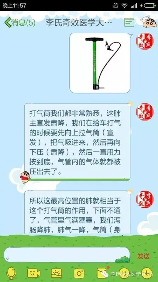 打气筒我们都非常熟悉,这肺主宣发肃降,我们在给车打气的时候要先向上拉气筒(宣发),把气吸进来,然后再向下压(肃降),然后一直用力按到底,气管内的气体就都被压出去了。