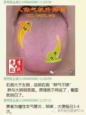 李师说“ 有其脉,便有其舌,有其舌,就有其证,有其证,则用其药”。意思就是说“有什么样的舌象就有什么样的脉象,有什么样的脉象就有什么样的舌相,有什么样的舌象(脉象)就有什么样的症候,有什么样的症候就用什么样的方药”。