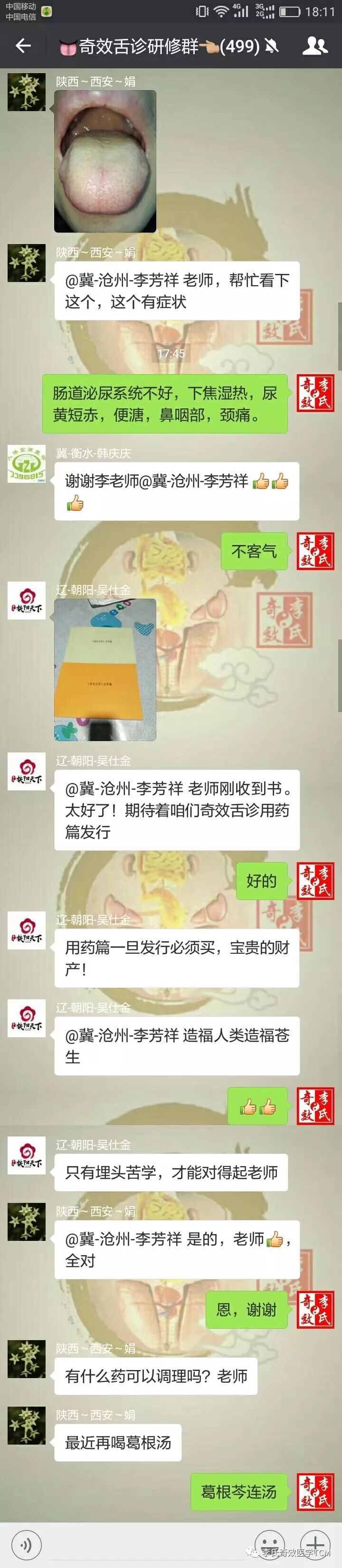 换而言之,有什么样的舌象,也就用什么样的方药。所以这是我们李氏奇效舌诊和望舌用药的基本理念。望舌用药,切脉用药,道理都是一样的,都是中医秘而不传之精髓,现在我把这一套绝技拿出来,希望我们在此微信平台中能给大家做一点拨和启迪,振兴中华医药能尽自己的微薄之力。