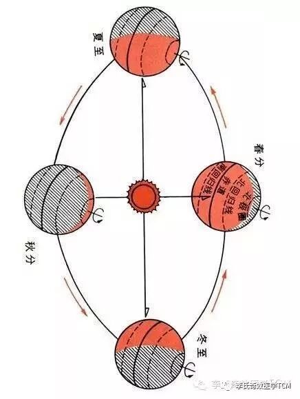 我们看这张图,地球的自转方向,和沿太阳的公转方向,都是自左向右的,也就是中医里说的“左升右降”。