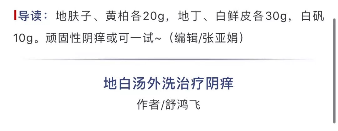 【专方来源】 高晓星.地白汤外洗治疗顽固性阴痒[J].北京中医学院学报,1989,12(2):29