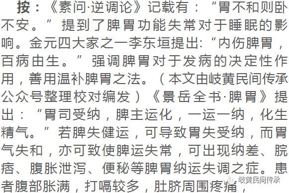 2019年5月15日三诊,患者自诉睡眠基本正常,腹胀满、乏力、打嗝等症状都有所改善。守上方服用7剂,以巩固疗效,并嘱其饮食规律,勿食辛辣刺激食物,注意生活调护。